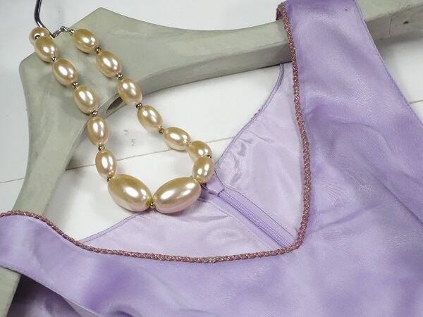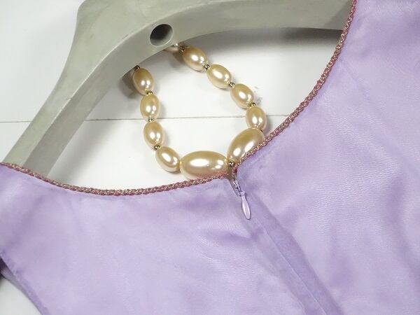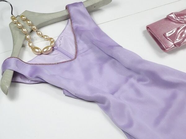 首元ビジュ-付きつるつるとした肌触りでとても着心地の良いドレスワンピ-スです。背中ファスナ-有。裏地有。