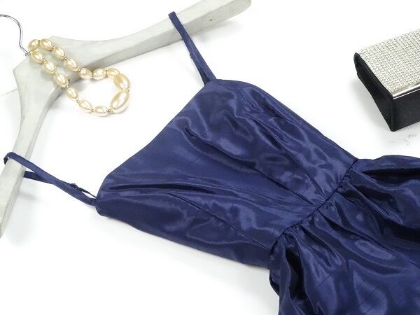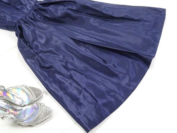 上品なサテンの光沢がエレガントなフォ-マルフレア-ドレスです!!つるつるとした肌触りがとても着心地良いです。裏地有り。左脇下ファスナ-有。