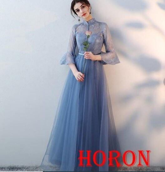 胸元刺繡チュ-ルレースロングドレスです。エレガントな女性らしい一品です。トップス部分は刺繍が施されたレースがサテン地に重ねられたエレガントなドレスです。背中網掛け。腰下ファスナ-有。胸パット付き。