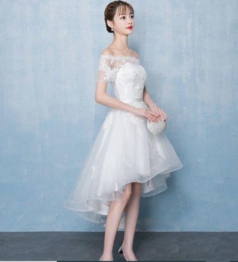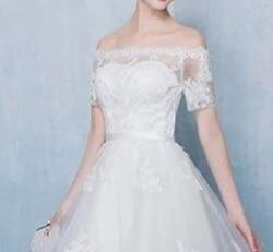 フィッシュテ-ルパ-ティ-ドレです。肩から袖にかけては透けとてもエレガント、スカート部分はチュ-ル仕様。パーティやイベント、結婚式など、様々なシーンで、気品のある印象を与えてくれる一枚です。裏地有。背中網掛け。背中腰下ファスナ-有。胸パット付き。
