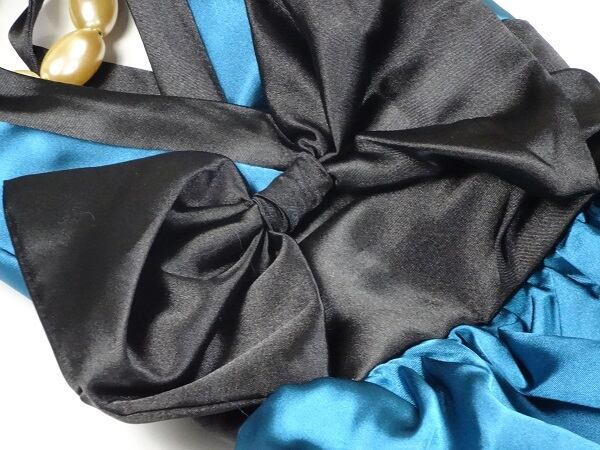 サテン素材にランダムタックをふんだんに施したとてもキュ-トなバル-ンAラインのミニドレスです。胸下に大きなリボンを添えてフェミニンさをプラス。光沢のある生地で高級感があります。背中ゴム入り。左サイドファスナー有。裏地有。