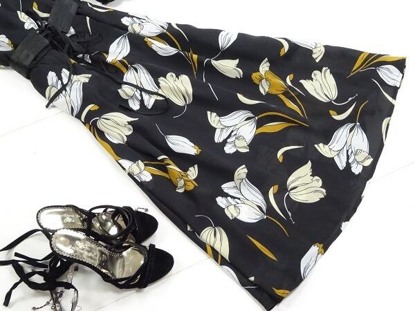 綺麗なシルエットの花柄ワンピ-スです。シックな色合いが、色々な表情を魅せてくれ、大人の高級感でフェミニンな印象を与えてくれます。柔らかい素材で美しくなびくのも女性度アップです。裏地有。背中ファスナ-有。
