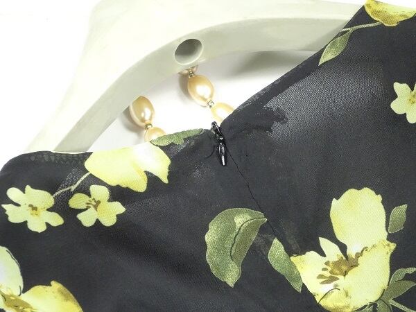 鮮やかな小花柄で素材はシフォンでとても着心地の良い一着です。結婚式やパ-ティ-にお勧めの商品です。ウエストリボン付き。裏地付。背中ファスナ-有。