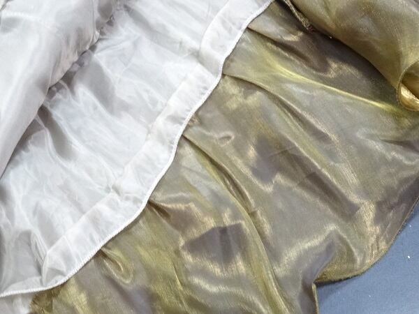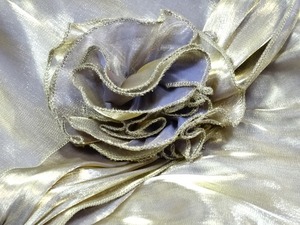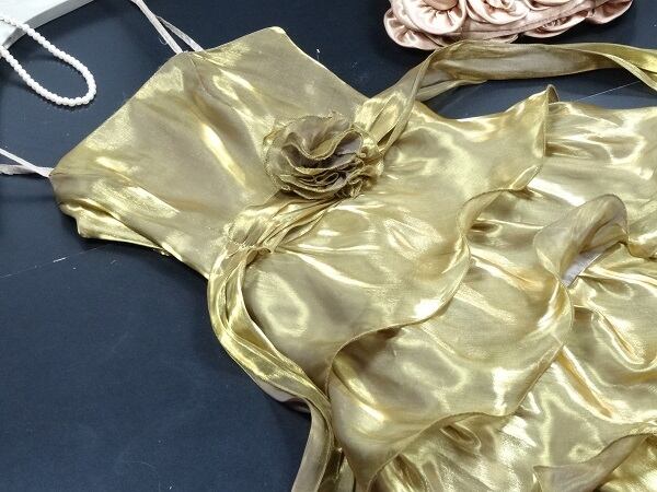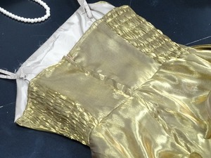 裏地あり。肩紐調整可。コサ-ジュ取り外し可。ウエストリボン取り外し不可。