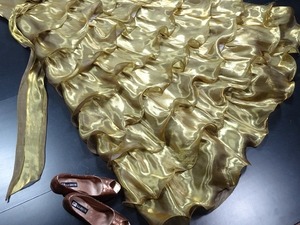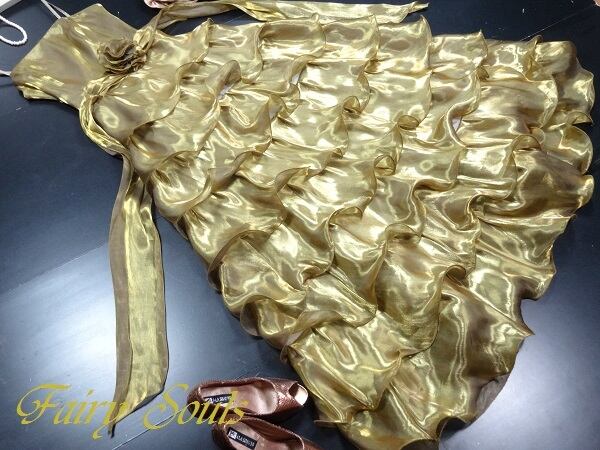 柔らかなシフォン素材のロングドレスです。胸元は、フラワ-モチ-フを施してスカ-トは、ティア-ドラインで流れるように広がる存在感があります。とても綺麗な色で存在感抜群です!