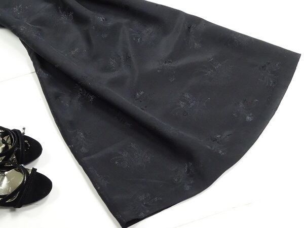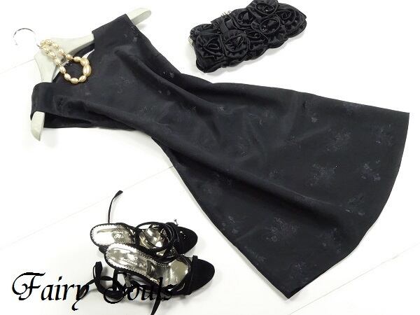 艶やかシックな花柄プリントのワンピース。つややかな黒の生地に黒のちいさな花模様をプリントしたフェミニンなデザイン。ラインも体の線に軽やかにフィットするAライン。シックでエレガント、上品な女性を表現してくれています。パーティやイベント、コンサート、結婚式にと、さまざまシーンで活躍してくれる美しい一着。背中ファスナー。裏地付。