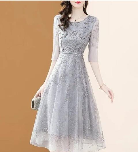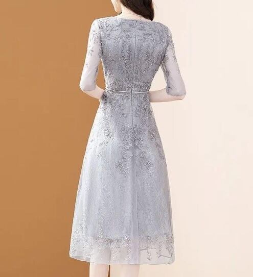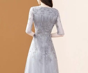 花柄立体刺繍レースミディアムドレスです。全体的に立体刺繡が施されたチュ-ルが重ねられデコルテの透け感がとても美しく大人の女性を醸し出してくれるエレガントなドレスです。デザイン性のあるスタイルがとても魅力的な一着です。全体的に優しい感じに仕上げられています。裏地有。背中ファスナ-有。