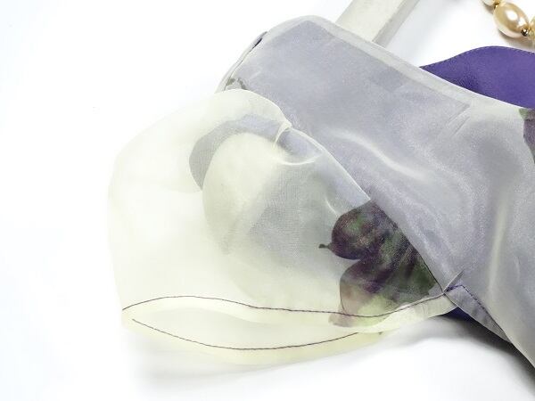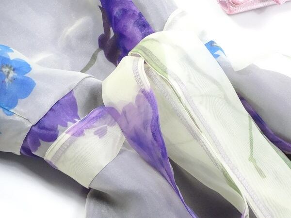 きれいなパープルでふんわりやわらか素材。腰紐がついていてウエスト調整出来るから自分でくびれを作れます。たいへん綺麗な色で女性度UP間違いありません。ファスナー左脇下あり。裏地有。