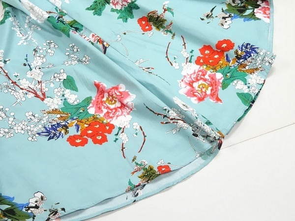 コットンノースリーブ襟付き花柄ワンピース。ゆったりとしたラウンドネックに肩にかけての襟がキュート。さわやかなコットン地に、シックな花模様をプリント。ウエストで切替が入り、裾にかけてたっぷり生地をとりフレアに。落ち着いた大人の魅力あふれる一着です。背中ファスナー。裏地なし。