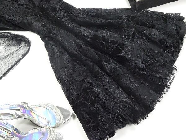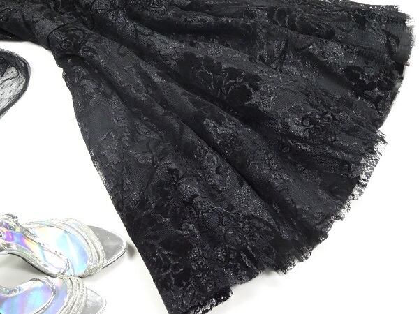 全体のレ-スがとてもエレガントで袖部分のレ-スもオシャレなワンピ-スです。大人の女性を醸し出してくれる一着です。裏地あり。背中ファスナ-あり。