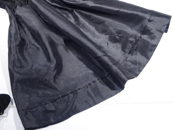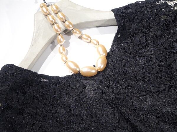 異素材切替レース仕立てのワンピース。トップス部分は、花柄透かしレース仕様。スカート部分はつややかでしっかりとした生地。2つの異なった素材がユニーク。襟ぐりは広いラウンドネックで、背中側はフロント側より少しV字になったプチセクシーなデザインになっています。トップスレース部分のほんのりとした透け感が上品な女性を表現してくれています。裏地なしなのでインナー着用をお勧めします。パーティやイベント、コンサート、結婚式にと、さまざまシーンで活躍してくれる美しい一着。背中ファスナー。