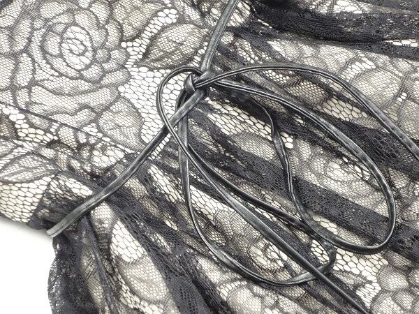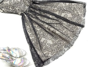 薔薇透かしレースのワンピース。胸元から袖にかけてはシースルーのネットチュール仕立て。全体に繊細な薔薇レースをちりばめ、チュールの間から下地のシャンパンベージュがほんのり見え、上品な女性を表現してくれています。パーティやイベント、コンサート、結婚式にと、さまざまシーンで活躍してくれる美しい一着。合成皮革紐ウエストリボン付き。背中ファスナー。裏地付。