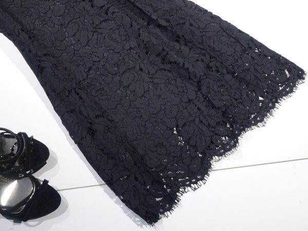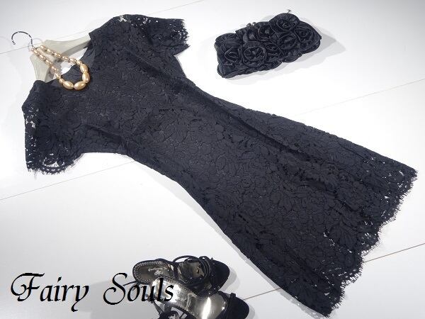 シックなAライン総レースのワンピース。シンプルなAラインに花柄のレース仕様が美しいデザイン。シックで上品な女性を表現してくれています。パーティやイベント、コンサート、結婚式にと、さまざまシーンで活躍してくれる美しい一着。背中ファスナー。裏地付。