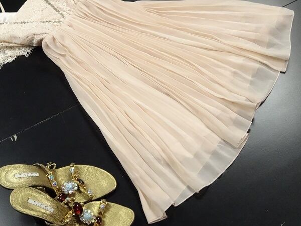 豪華さと優雅さを併せ持つ総プリーツのワンピース。上品でしなやか。どんなシーンにも合わせられる可愛いピンクのワンピースです。裏地付。ファスナ-なし(かぶるタイプ)。