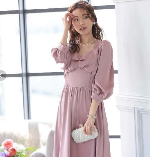光沢マキシ丈サテンのワンピ-ス。艶のある落ち着いたスモーキーピンクのサテン地を使用。胸元は中央でタックをとりウエストは両サイドシャーリング仕様でウエストサイズにゆとりが出るデザインになっています。ゆったりとしていてエレガントな雰囲気をまとった上品な一枚。デートやコンサート、結婚式の二次会など様々なシーンで活躍してくれる一着です。裏地付。背中ファスナー有。