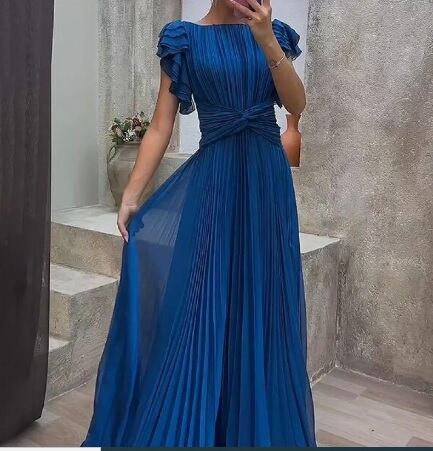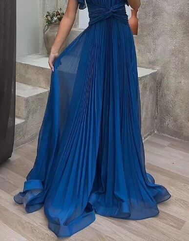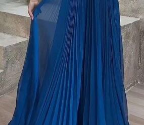 エレガント総プリーツロングドレスです。たっぷりと生地をとった繊細なプリーツは、ゴージャス感もあり、また動くたびにひらひらと舞う森の中の妖精のようでもあります。大変エレガントな女性を引き立たせてくれるデザインです。裏地付。左サイドファスナー有。
