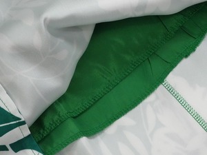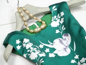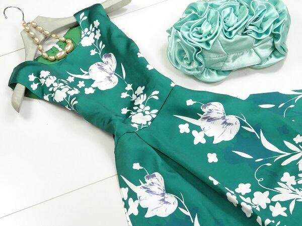 インパクトのある鮮やかなグリ-ンでセレブなデザインです。シンプルな飽きのこない着まわせる一着です。裏地有。背中ファスナ-有。