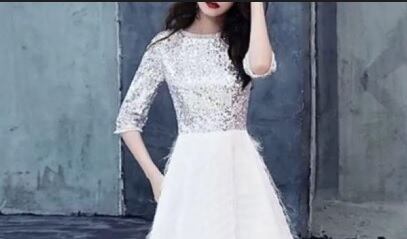 スパンコールとフリンジのキュートなドレス。上半身は全体に小さなシルバーのスパンコールを、また、スカート部分には細いフリンジを全体にあしらった華やかなデザイン。ちょっとおしゃれな普段着として、またパーティやイベント、結婚式などにも活躍してくれる一着です。背中ファスナー。裏地有り。胸パッド付。