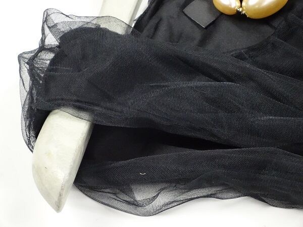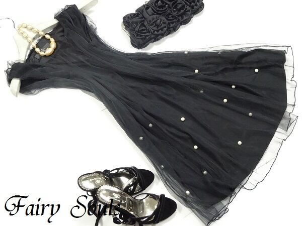 フェイクパール飾りネットチュール仕立てのワンピース。しなやかなネットチュールに大きなフェイクパールをあしらったキュートなデザイン。パーティやイベント、コンサート、結婚式にと、さまざまシーンで活躍してくれる美しい一着。ファスナーなしのかぶるタイプ。裏地付。