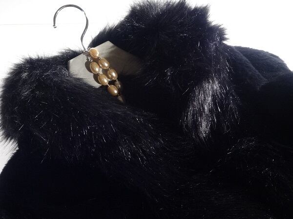 フェイクファーケープ風ミニコート。柔らかい手触りのフェイクファーをふんだんに使用。ボタンなし中央で合わせるスタイル。そではひじあたりから袖先まで大きく開いていて、ケープのゆったり感と肩が落ちず腕をしっかり守るというコートの良いところを併せ持っています。豪華でフェミニンなデザイン。ボトムとのコーディネート次第でさまざまシーンで活躍してくれるキュートな一着。ファスナーなし中央合わせ。裏地付。