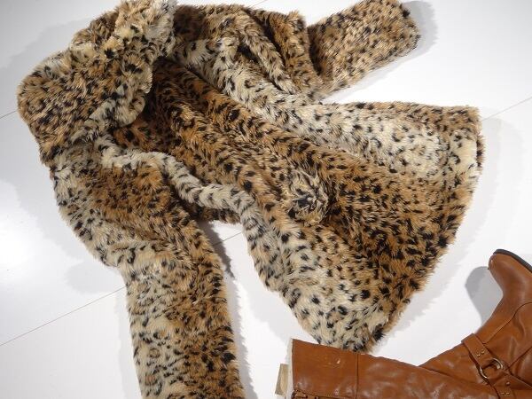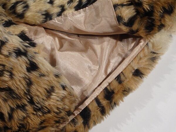 フェイクファーレオパード柄のコート。柔らかい手触りのフェイクファーをふんだんに使用。全体がレオパード柄ですが派手ではなく、落ち着いた印象。ボトムとのコーディネート次第でさまざまシーンで活躍してくれる魅力的な一着。ファスナーなし。前ボタン留め。裏地付。