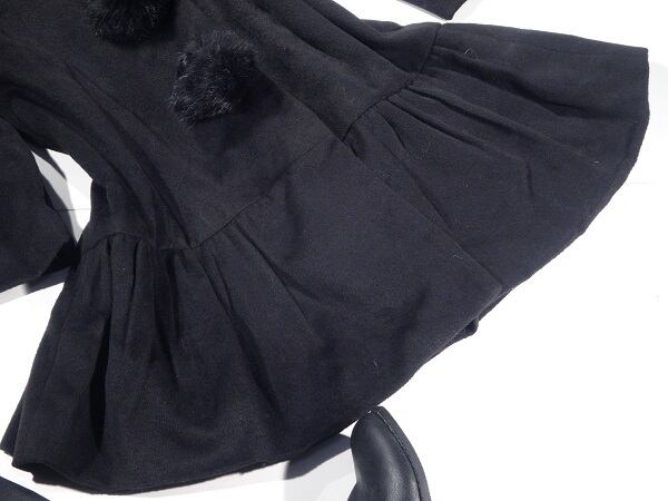 ゆったりキュートなデザインフロントファー飾りのコート。幅広の立て襟は寒さから首元をしっかり守ってくれます。ゆったりしたラグラン仕様の袖は締め付けがないので腕が動きやすくなっています。前身ごろの大きなファーのぼんぼり飾りがシックな中にキュートさをプラス。柔らかなウール混の生地が温かく優しい印象の一着です。ファスナーなし。フロントボタン留め。裏地付。