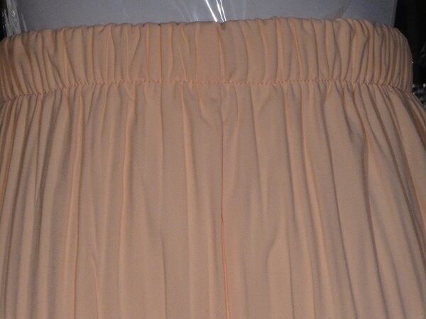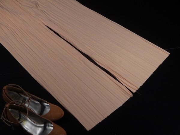 ピンクのキュートなプリ-ツガウチョパンツ 。伸縮性のあるやわらかな生地で、足の動きに合わせてふわっとスカ-トが軽やかに揺れます!縦のプリ-ツラインが足長効果も!見た目はプリ-ツスカ-ト、でもガウチョだから足さばき楽です。ウエストゴム仕様。ファスナ-なし。裏地付。