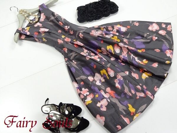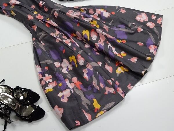 H&Mブランド花柄のワンピース。H&Mのノースリーブワンピース。しっかりとした黒地にカラフルな花模様が、絵画風にプリントされています。パーティやイベント、コンサート、結婚式にと、さまざまシーンで活躍してくれる美しい一着。背中ファスナー。裏地付。 未使用。タグ付。