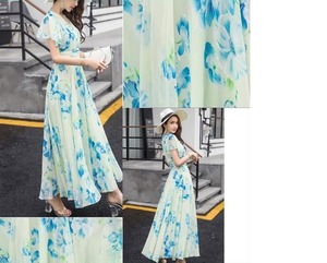 天使のようなとても見栄えのする豪華な花柄シフォンロングドレスです。スカ-ト部分はたっぷりと生地を使い大変ボリュ-ム感のある女性らしい素晴らしいドレスです。軽やかでしなやかな生地で裾が歩くたびにひらひらと揺れ、足元を美しく見せてくれます。裏地有。右サイドファスナ-有。