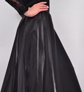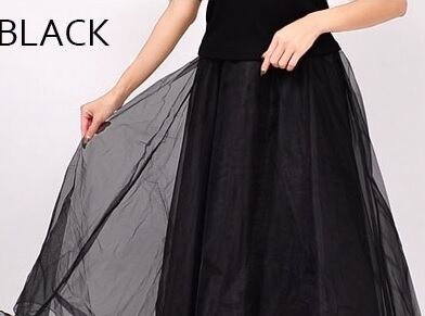 サラサラネットシフォン黒のフレアスカート。つややかネット状になったシフォン生地をたっぷり使用したフレアタイプ。上品な女性を表現してくれています。パーティやイベント、コンサート、結婚式にと、さまざまシーンで活躍してくれる美しい一着。サイドファスナー。裏地付。