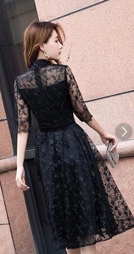 透け感が美しい総レース仕様のワンピ-スです。裾までボタニカル柄をあしらったレース仕立ての生地をたっぷりと使用。ボリュームを出し華やかな印象に。袖は透け感があり、二の腕がほんのりと見え、品の良いセクシー感をかもしだしています。シックでやさしくエレガントな一着です。背中ファスナーあり。裏地付き。