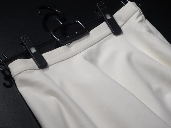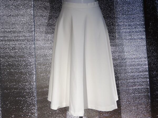 オフホワイト上質素材のミモレ丈スカート。上質な伸縮性のあるやわらかな生地をたっぷりと使用したフレアが足元を美しく魅せてくれます。普段着はもちろん、フォーマルなシーンにも活用頂ける一着です。ファスナー付。裏地あり。