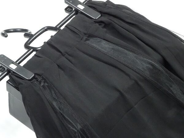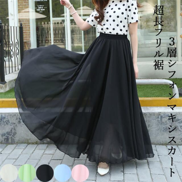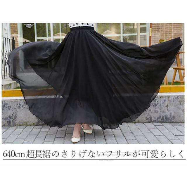 シフォンフレア-ロングスカ-トです。シフォンをたっぷりと使用され歩くたびに揺らぐエレガントかつ艶やかなスカ-トです。裏地有り。ファスナ-なし。