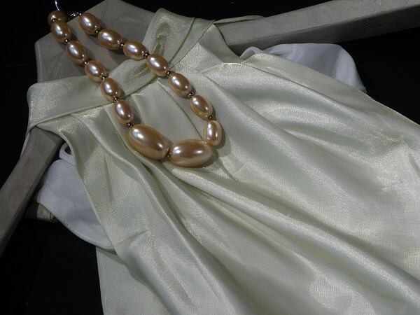 光沢艶めく美しいホルダ-ネックドレスです。さわやかなデザイン。パーティ、イベント、結婚式の二次会、コンサートなど幅広いシーンで活躍してくれる一着です。背中ファスナー有。裏地有。