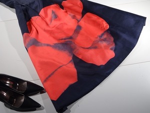 大きな花柄プリントが大胆で艶のある光沢生地に赤い花柄が情熱的な印象を与えます。お呼ばれやデート、コンサートや結婚式の二次会にと、幅広いシーンで活躍してくれます。背中ファスナー有。裏地あり。。