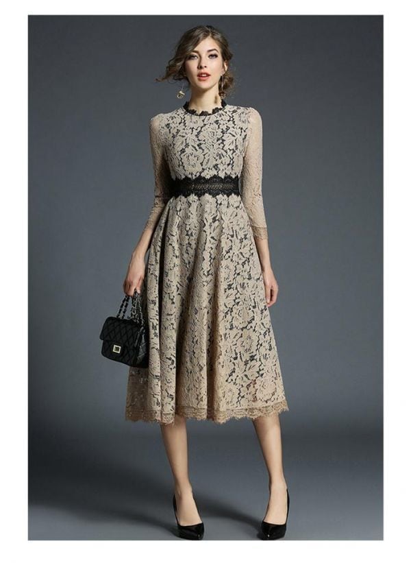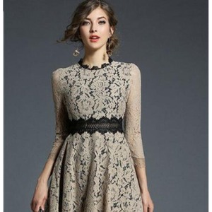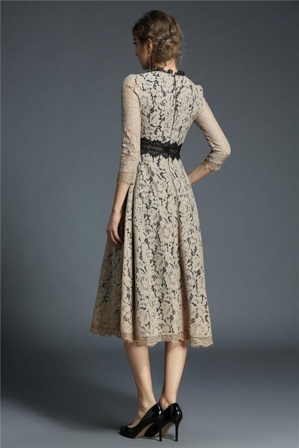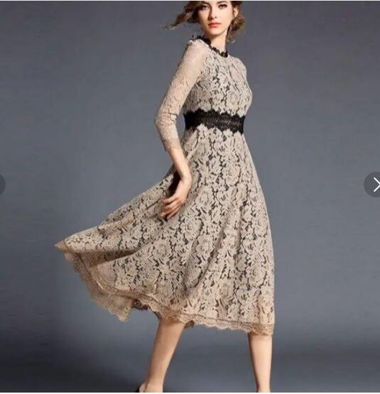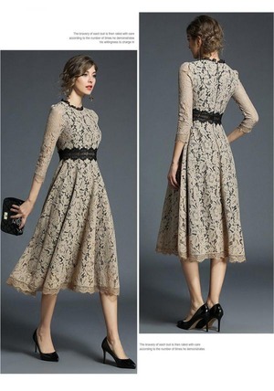 デイシ-刺繍総レ-スフェミニンなデザインのミモレ丈ワンピ-スです。ウエストにデイシ-柄刺繍がデザインされています。スリムに見えるデザインで大人の女性を醸し出してくれる一着です。裏地あり。背中ファスナ-有。