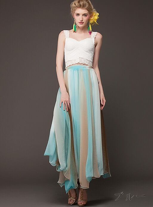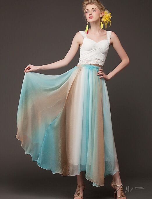 シンプルなシフォンのロングスカ-トです。歩く度にふんわりと揺れる裾が視線を集めます。!リゾ-トコ-デに最適!裏地付。