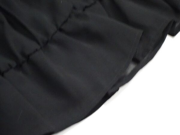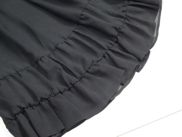 フリルがとても可愛いフレア-ワンピ-スです。胸元から切替になっています。裏地有り。右脇下ファスナ-有。