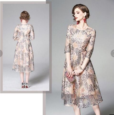 ラベンダー色ボタニカル刺繍の上質ワンピースです。やさしいラベンダーのチュール地にカラフルなボタニカル刺繍をほどこした可愛らしいデザインで後ろの丈が少し長いです。透け感がキュートなセクシー感を演出。優しい感じのワンピ-スです。背中ファスナーあり。裏地あり。