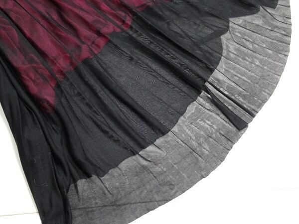 シ-スル-パ-ティ-ドレスです。胸元のリボンがポイントで赤のサテン地に黒のレ-スを被せたエレガントな一着です。裏地有。ファスナ-なし(かぶるタイプ)。肩ひも脇から22cm。
