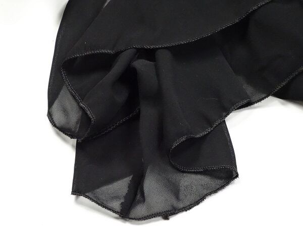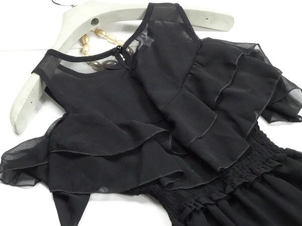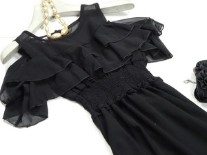 肩から胸元はフリルになっていて女性の魅力を十分に引き出してくれます。肩が開いていて女性度UP!ファスナーなし(かぶるタイプ)首後ろボタン1つ有り。裏地有。