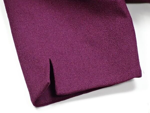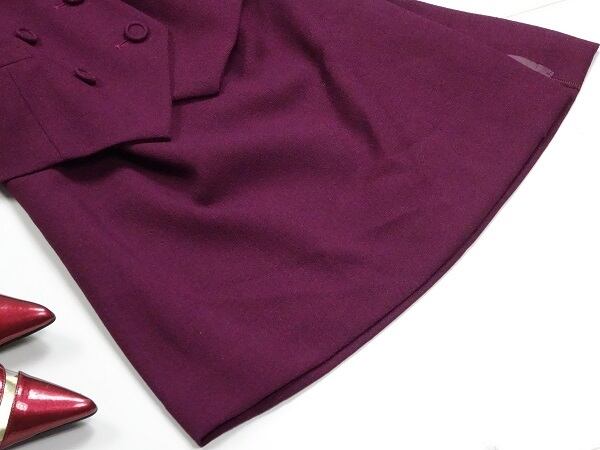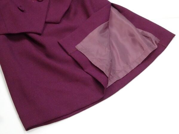 ワインレッドのタイトスカートのス-ツです。スカ-トには10cmのスリットがあります。裏地有。スカ-トは後ろファスナ-&ホック留め。