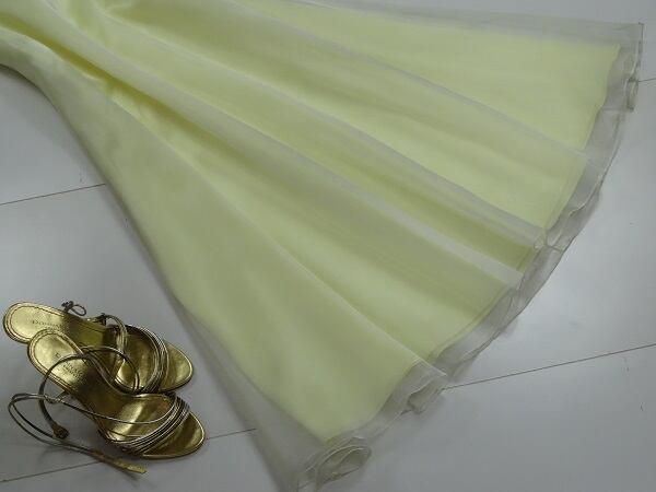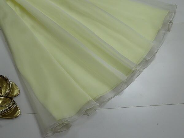 ステージフレアロング丈オーガンジーのスカート。艶やかなサテン地の上にオーガンジーをかぶせた華やかな一着。歩く度にふんわりと揺れる裾が視線を集めます。後ろファスナー。裏地付。