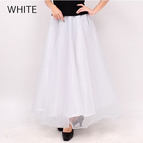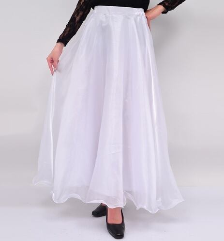 ステージフレアロング丈オーガンジーのスカート。艶やかなサテン地の上にオーガンジーをかぶせた華やかな一着。歩く度にふんわりと揺れる裾が視線を集めます。後ろファスナー。裏地付。日本製。