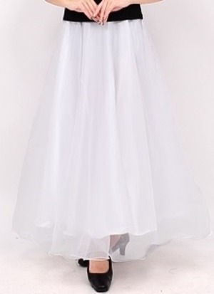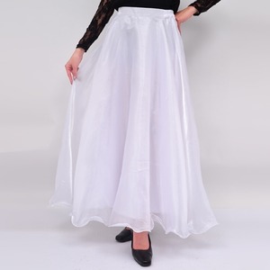 ステージフレアロング丈オーガンジーのスカート。艶やかなサテン地の上にオーガンジーをかぶせた華やかな一着。歩く度にふんわりと揺れる裾が視線を集めます。後ろファスナー。裏地付。日本製。