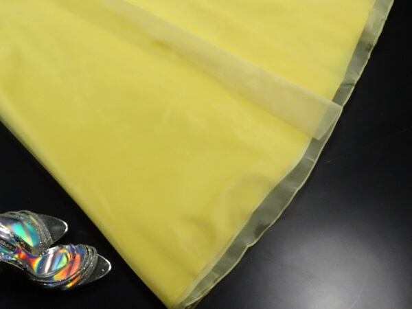ステージフレアロング丈オーガンジーのスカート。3重生地で艶やかなサテン地の上にオーガンジーをかぶせた華やかな一着。歩く度にふんわりと揺れる裾が視線を集めます。後ろファスナー。裏地付。日本製。