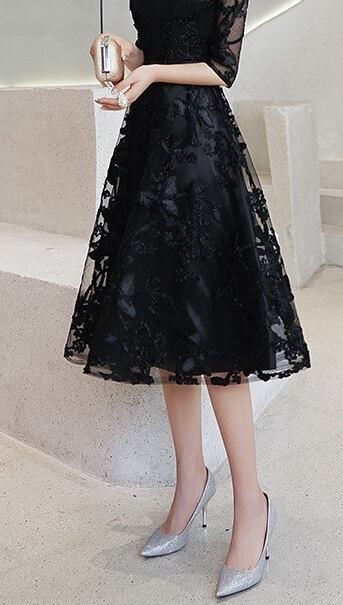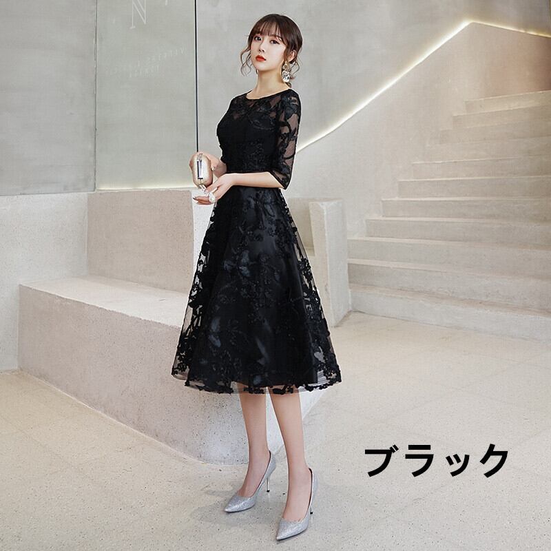 チュ-ルレースミディアムパ-ティ-ドレスです。トレンド感たっぷりリボン刺繍のエレガントなドレスです。ハイウエストのリボン切替で脚長効果のあるデザイン性のあるスタイルがとても魅力的な一着です。全体的に女性度UPに仕上げられています。背中ファスナ-有。胸パット付き。裏地有。