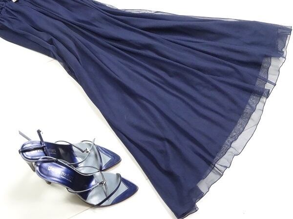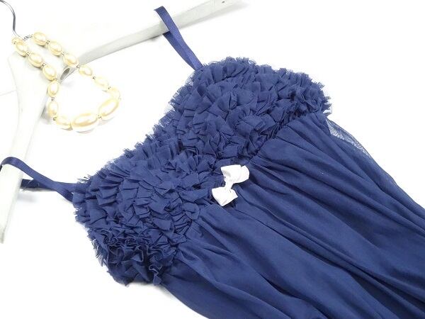 ふわふわシフォン膝丈ワンピースです。ほんのりとした透け感が上品な女性を表現してくれています。パーティやイベント、コンサート、結婚式にと、さまざまシーンで活躍してくれるキュートな一着。ファスナーなしのかぶるタイプ。裏地付。