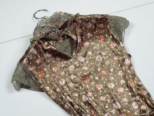 ■サイズ 9号 バスト:約84cm ウエスト:約82cm 着丈:約94cm 肩幅:約36cm 袖丈:約7cm