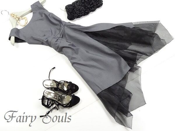 高級感漂うデザイン性の高い異素材MIXのエレガントかつ知的なドレスワンピース。スーツ地とオーガンジーの華やかさがマッチした異素材と、イレギュラーな裾のデザインやディテールの凝ったデザインがとても素敵です。裾のオーガンジーの透け感がセクシーさをプラス。裏地あり。サイドファスナー有。